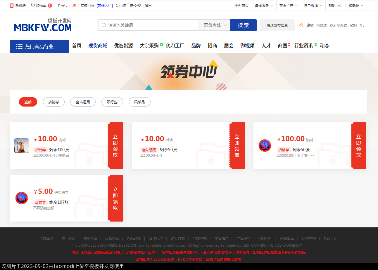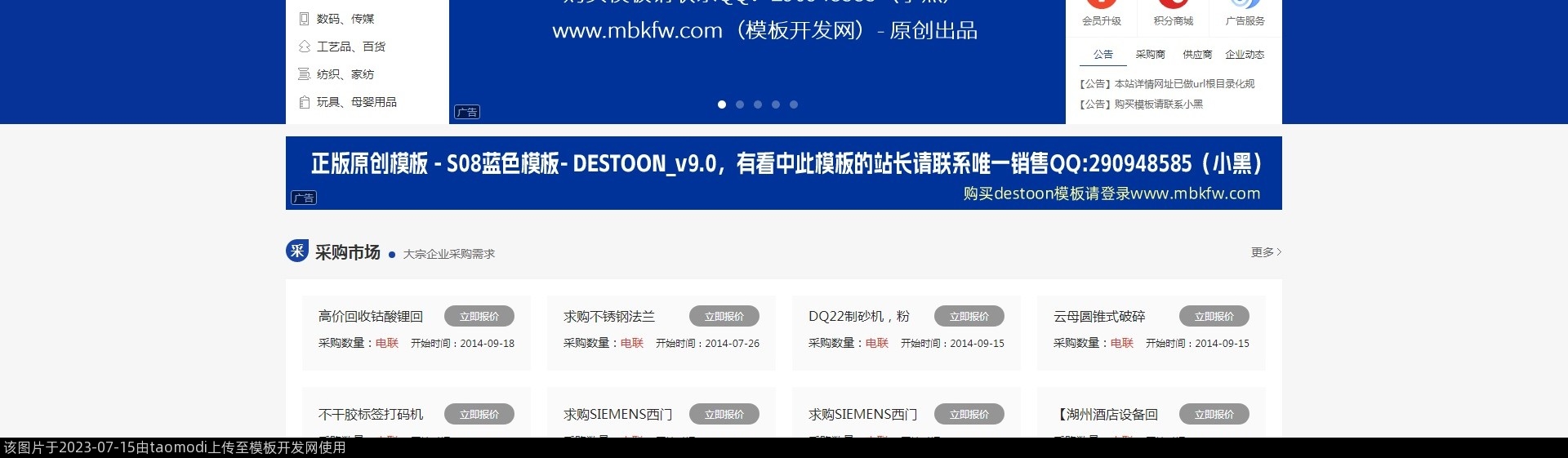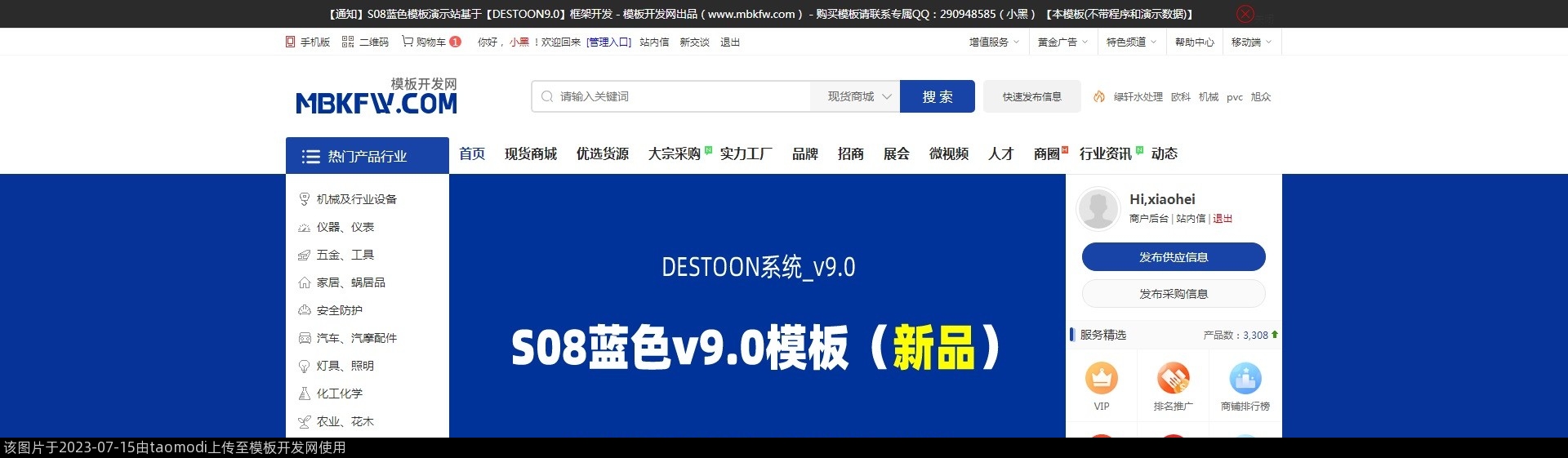 (致:本模板原destoon8.0的用户,服务没有过期的可以联系客服获取最新destoon9.0模板包,服务过期用户需续费才能获取(从购买日起1年内),所需费用请咨询在线客服)