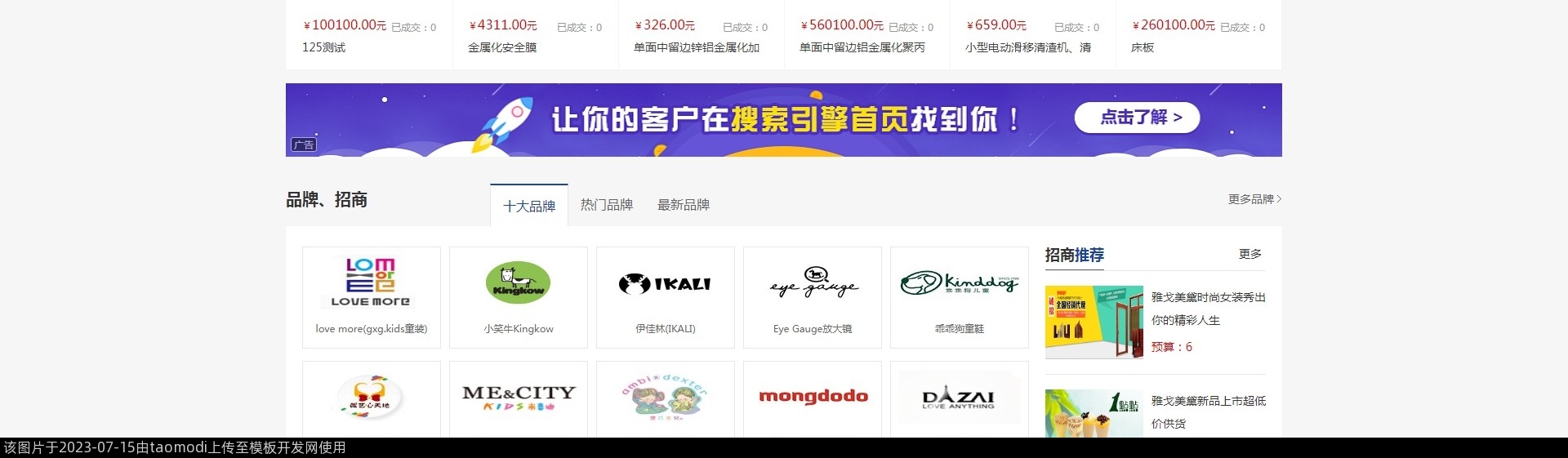 1、主开发模板有:主首页,商城频道,供应频道,求购频道,公司频道,品牌频道,招商频道,资讯频道,视频频道,人才频道,商圈频道,积分频道,关于我们单页,意见反馈,会员中心等。