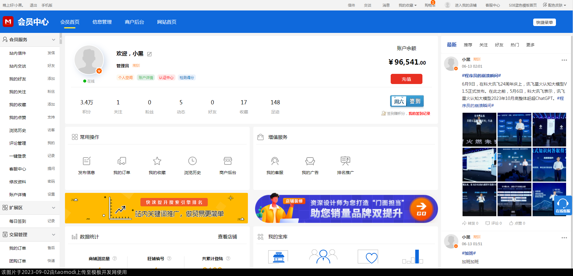 注意:本模板标准版及以上的客户可在1年内联系小黑免费获得本模板【升级包,原演示站效果,不包调整升级】