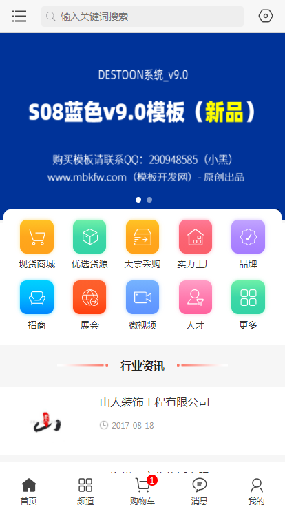 S08蓝色版V9.0模板,已经完美支持destoon v9.0系统。
