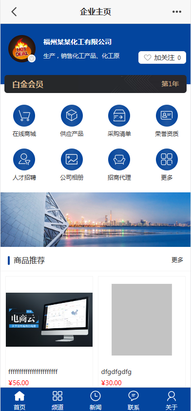 destoon9.0会员商铺模板,本次制作概念为把商铺样式布局成企业网站化,去除平台的会员组标志,带手机版,更有利于企业的选择和认可