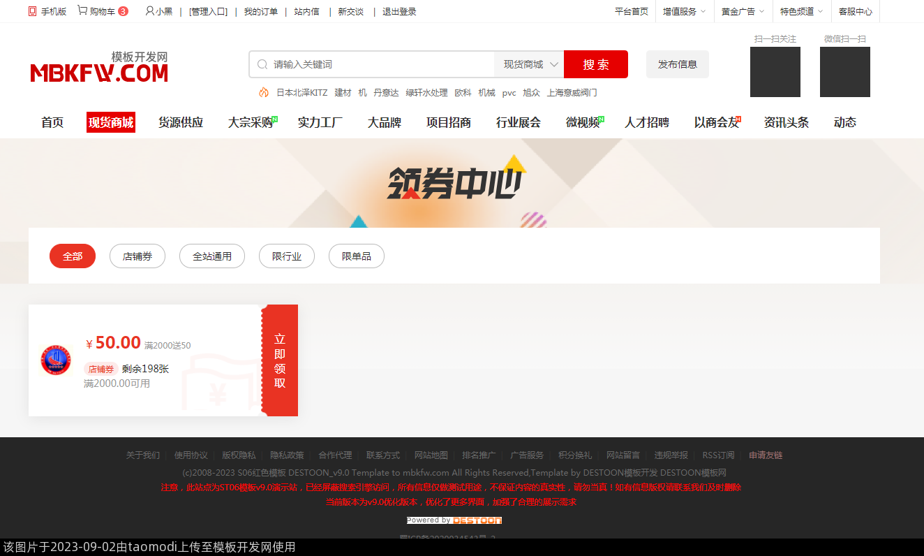 (致:本模板原destoon8.0的用户,服务没有过期的可以联系客服获取最新destoon9.0模板包,服务过期用户需续费才能获取(从购买日起1年内),所需费用请咨询在线客服)