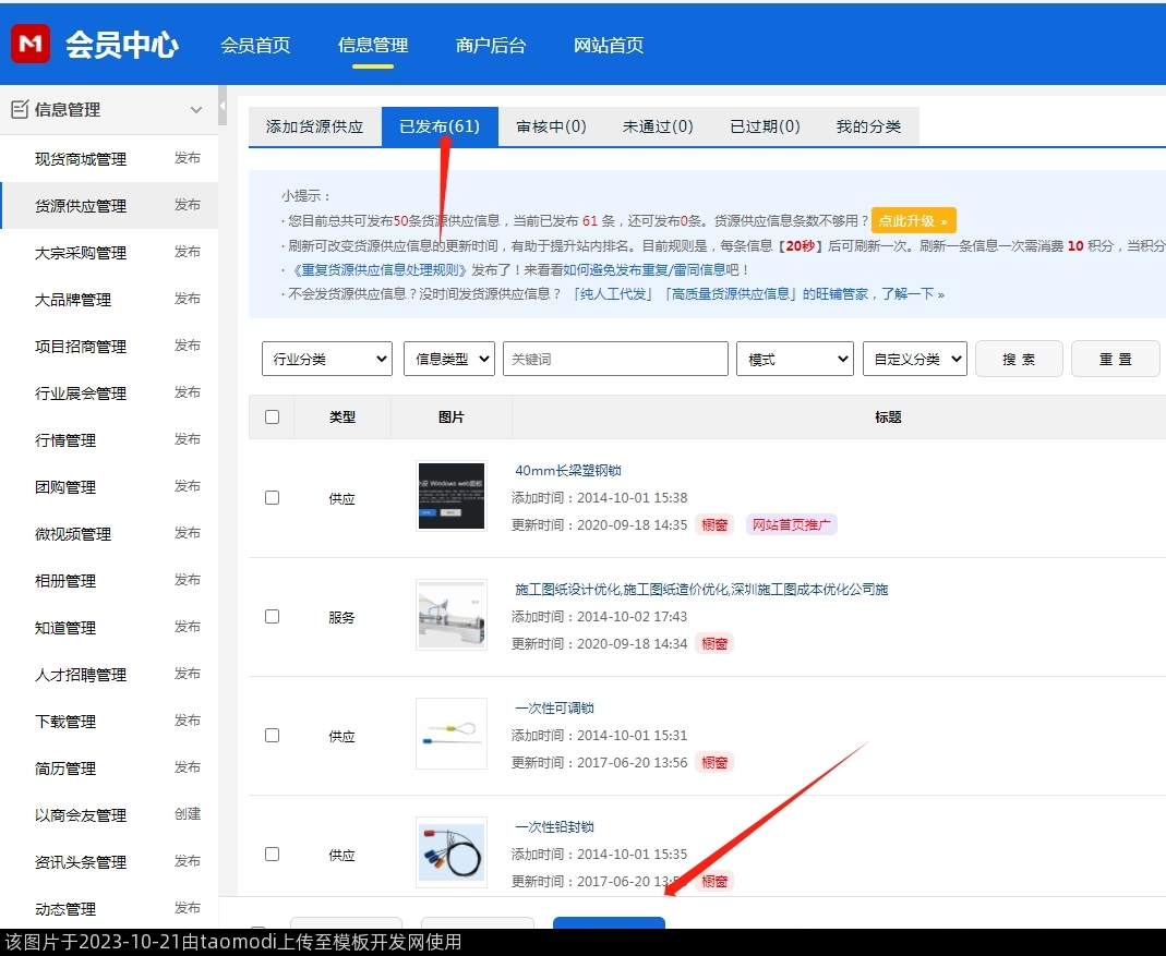 1、主开发模板有:主首页,商城频道,供应频道,求购频道,公司频道,品牌频道,招商频道,展会频道,资讯频道,商圈频道,人才频道,视频频道,积分频道,关于我们单页,会员中心等。
