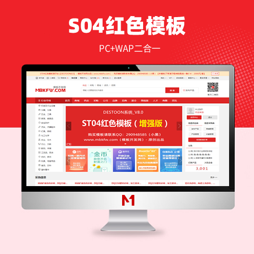 S04红色增强型平台模板-DESTOON8.0系统框架模板